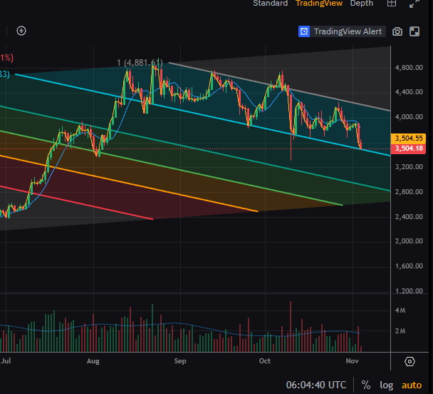 얕더라도 반등은 있을 수 있지만 이번에 채널 뚫리면 2800까지 -20% 꽂힘