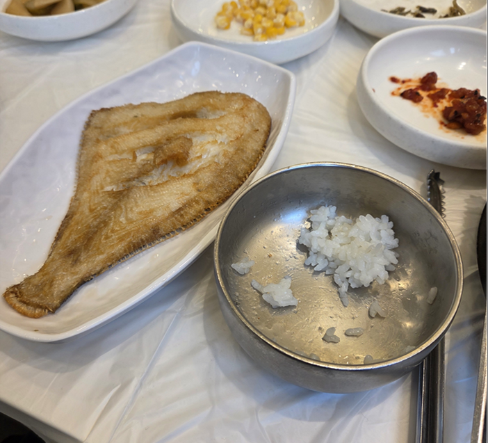 전복 뚝배기에 가자미 구이도 쿰척쿰척해주고맛있었음.