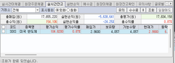 보고 바로 SOXS랑 코스피 숏 포지션 잡음
