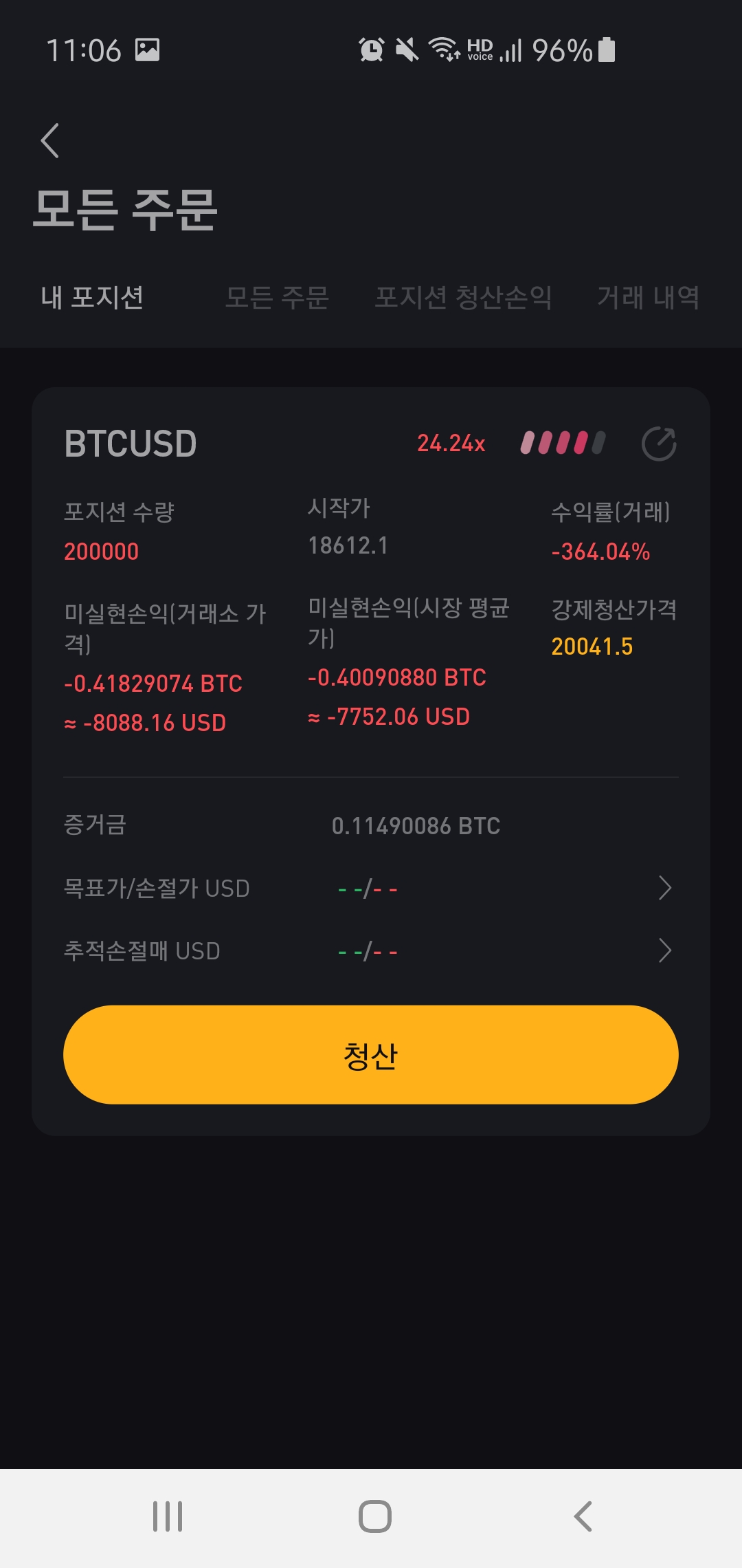 15,000달러 포지션 터짐