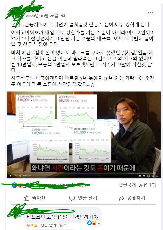 지난해 10월말에 페이스북에 쓴 글임