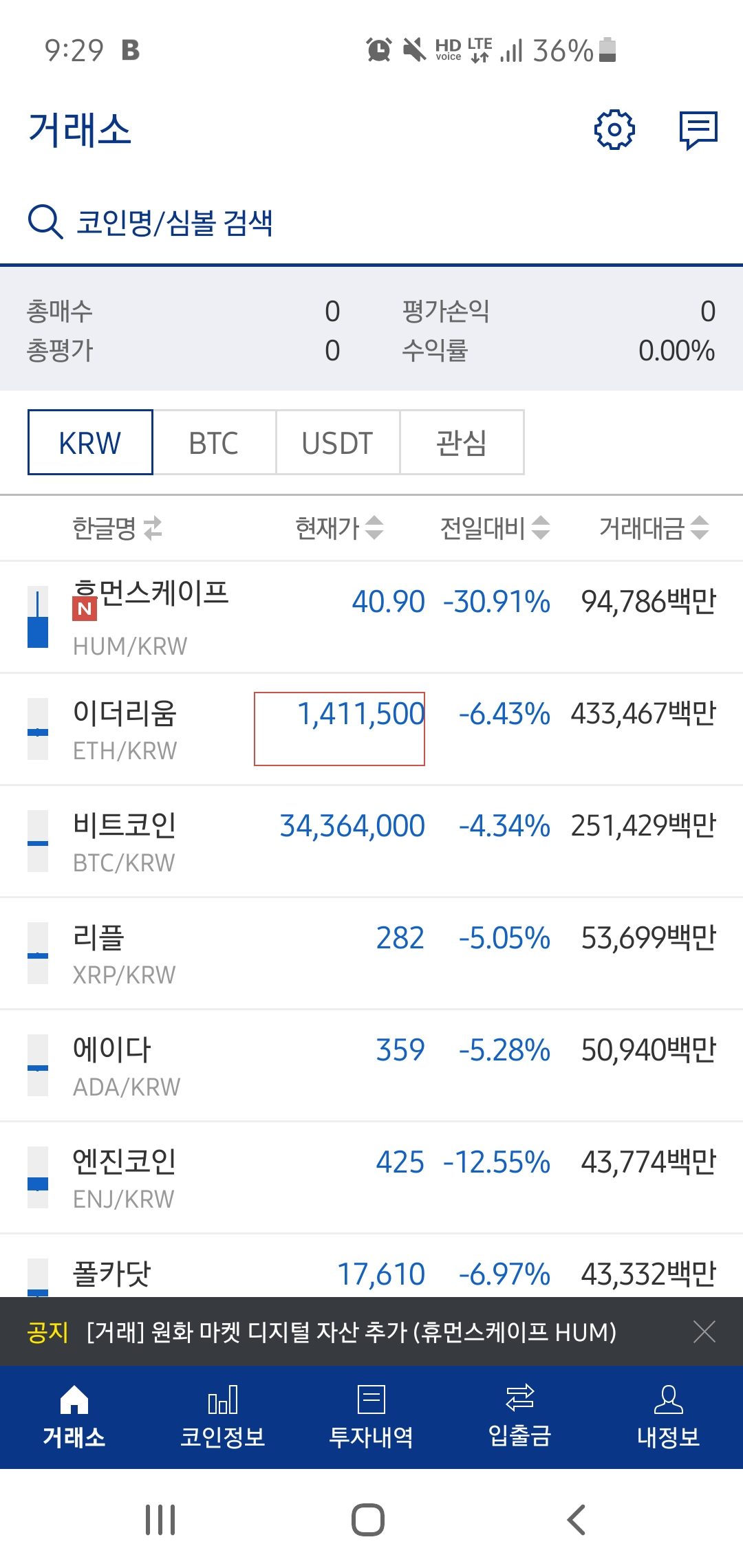 암호화폐 : 업비트 현금 100%, 비트코인 0.5배 공매도