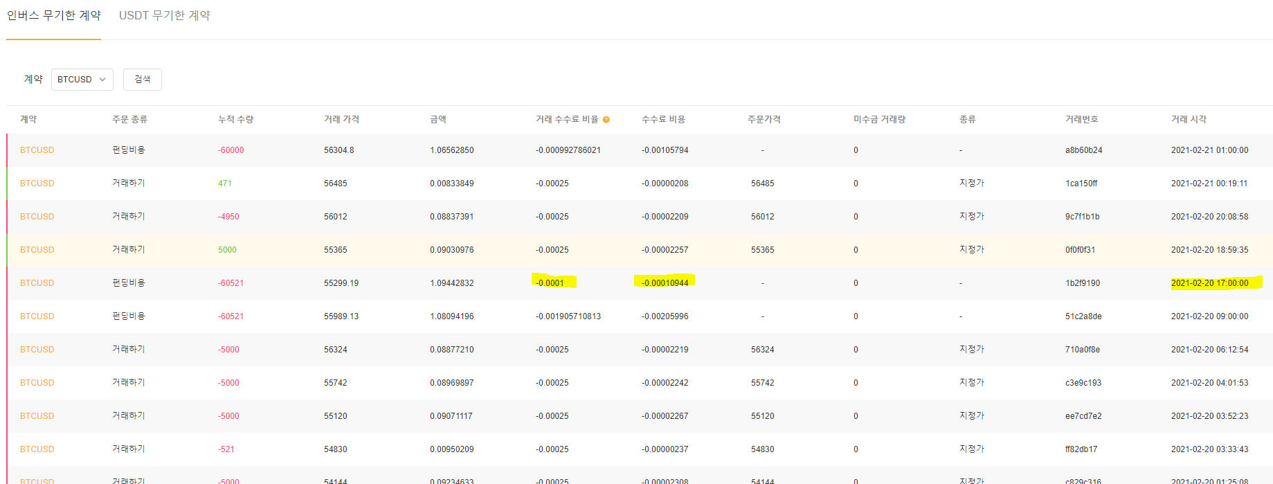 이게 펀딩비용이랑 거래내용까지 같이 나와서 잘 안보이는데 펀딩비용만 갈무리 해보면