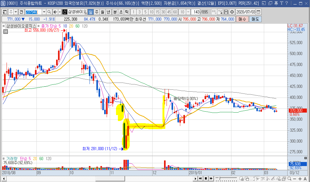 ‘18년 11월에 분식회계 이슈가 불거지면서 삼성바이오로직스의 상장폐지 설이 돌았다. 지금도 글로벌 회계기준이나 콜옵션 풋옵션, 심지어 논쟁의 주제도 정확하게 알지는 못하지만 직관적으로 판단했다. 삼성바이오면 관련 이슈에 대해 손해를 보면 손해를 보고말지 범죄인걸 알면서 구차하게 굴지는 않았을 것이다. 만약 의도했다면 절대 들키지 않았을 것이다. 삼성바이오가 상장폐지 된다면 국민연금을 포함해 어마어마한 쇼크가 올 것이고, 정치인들과 관계자 중 삼성바이오에 투자한 사람이 있다면 상장폐지를 내버려두지는 않을 것이다. 따라서 거래정지는 되겠지만 거래재개시 못해도 20%, 여차하면 상한가가 가능할 것이라고 판단했다. 그리고 실제로 29만 원에 풀베팅을 했고 거래재개날 30% 정도 수익을 내고 나왔다.