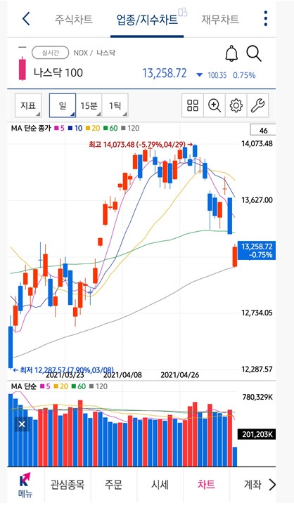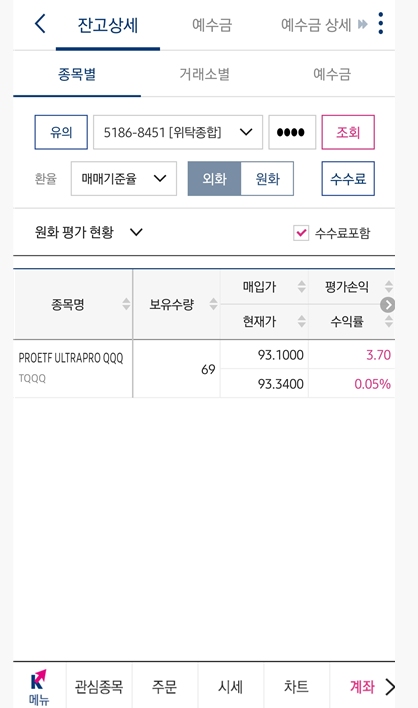 선물로 롱잡고 싶었는데 미리 세팅을 안해놔서 파생상품 어쩌고 이런거랑 수수료 같은걸 잘 모르고 여차하다가는 터질 수 있어서 그냥 TQQQ로 담은것도 있음.