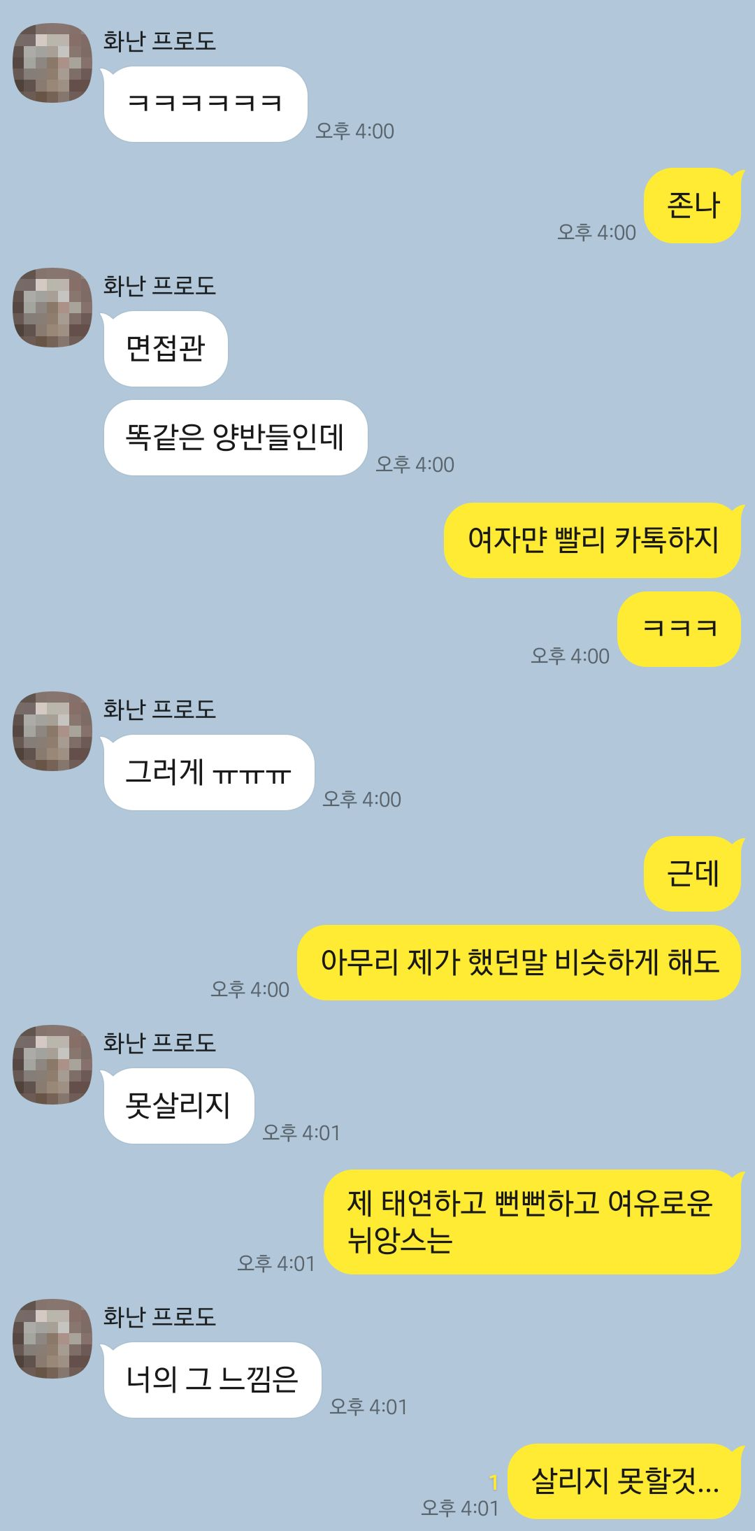 그런데 말야 어! 면접은 남자들만 봤냐고. 쓰니들아 이거 혹시 성인지 감수성 부족하고 그런거야?? 퓨ㅠㅠ퓨ㅠㅠㅍㅍ 내가 미녀들이랑 대화할 수 있는 기회는