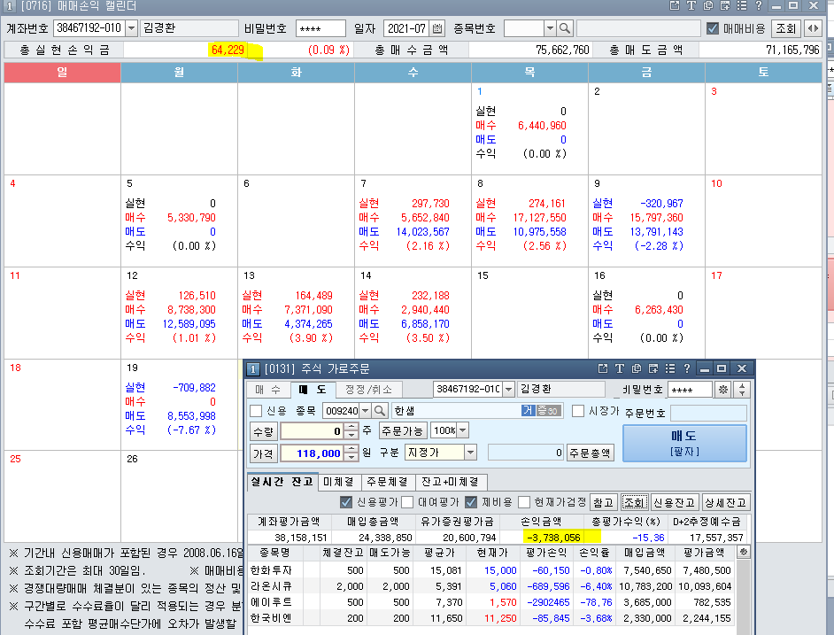 일부 출금해서 사업자금으로 활용한 점도 있긴 하지만 대충 7월달 -1,000마넌 정도 찍었고 (평가손 말고 확정 손절) 300마넌 물려있음.