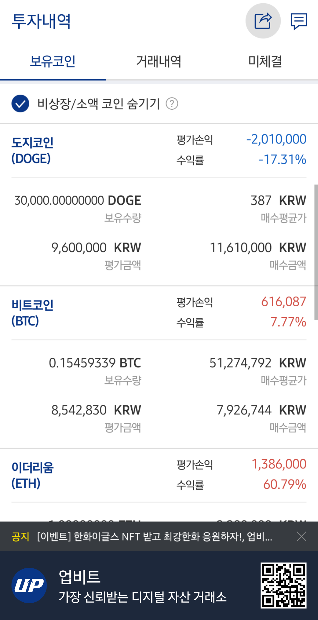난 늘 물려있고 늘 좃 된 상태지. 도지에 물렸어. 100마넌 분할매수 한줄 알았는데 1,000마넌 샀더라고... 시브랄...