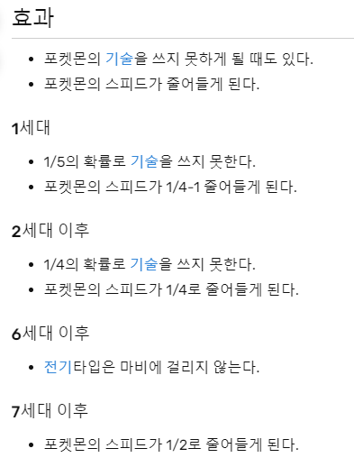마비에 걸렸을때 스킬이 안나가고 교체하기 전 쳐맞는다거나