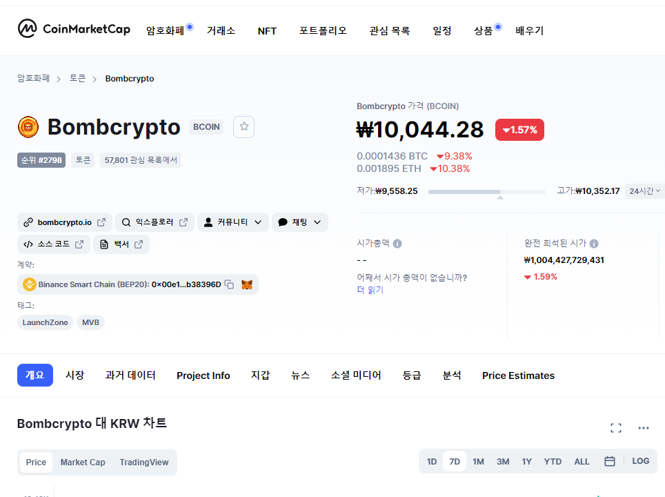 Bombcrypto (BCOIN) 가격, 차트, 시가총액 | 코인마켓캡 (coinmarketcap.com)Bombcrypto (BCOIN) 가격, 차트, 시가총액 | 코인마켓캡