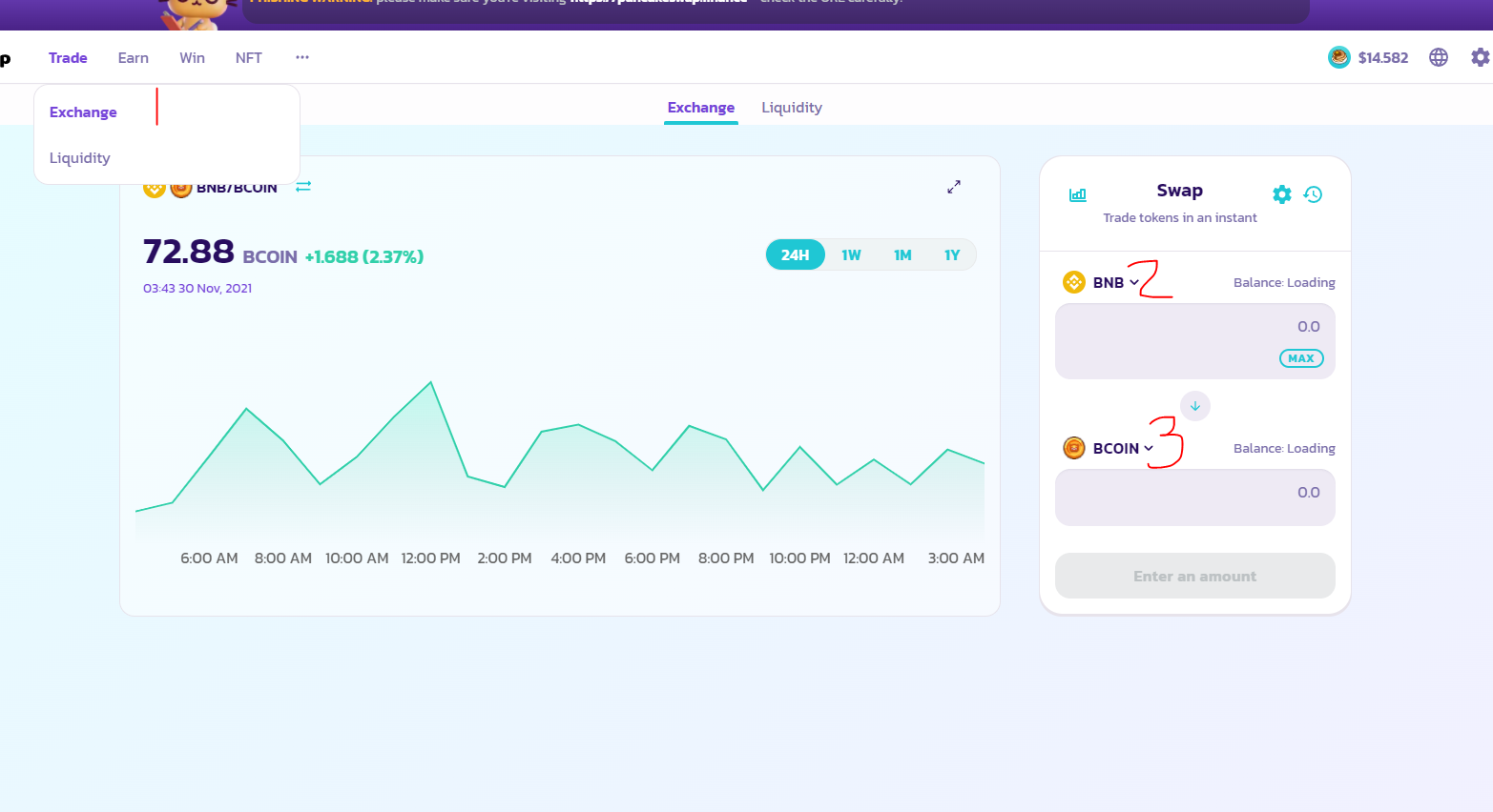 5. 팬케이크 스왑에서 BNB코인을 Bcoin 으로 바꾸기