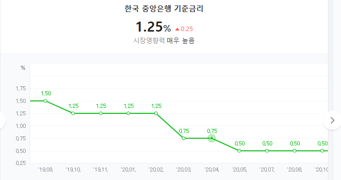 1년사이 금리 자체는 0.75%에서 1.25%로
