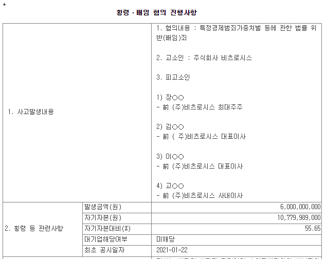 법인에 약 60억원 규모의 손실을 입혔으니 60억 횡령으로 고소하는거죠.