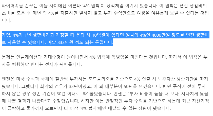 파이어족에 대한 환상을 버리셨으면 좋겠네요.