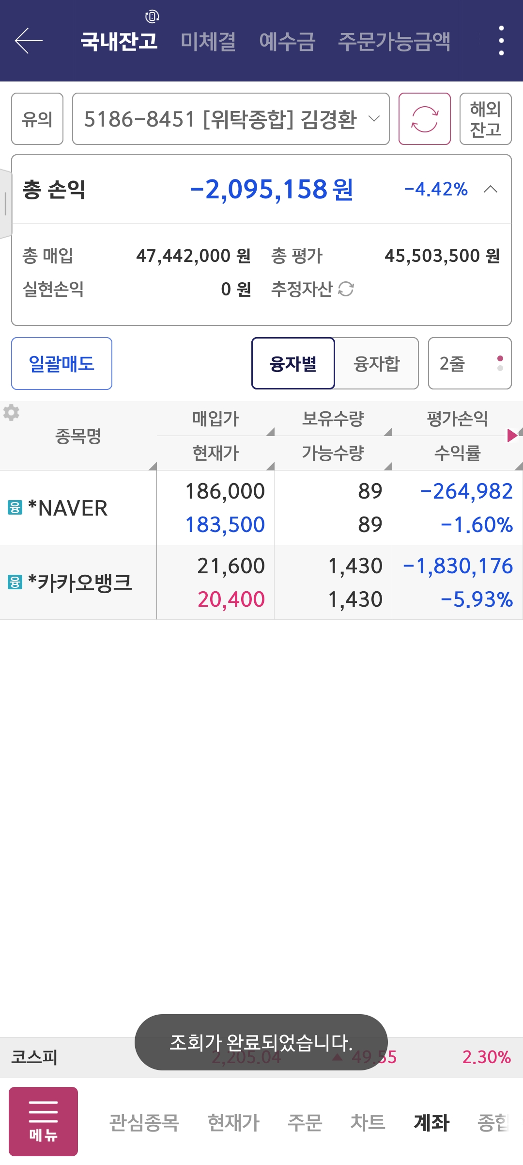 뭘 먼저 손절할까요? 당연히 카카오를 던집니다