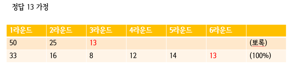 정답이 13이라면 뽀록으로 3라운드만에 이길수도 있지만