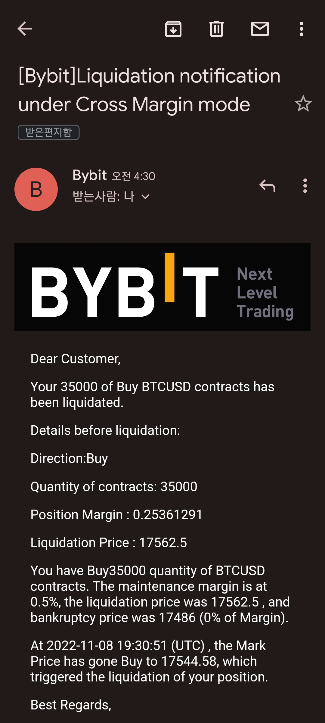 바이빗은 한 2000마넌짜리 롱포지션 청산당했고