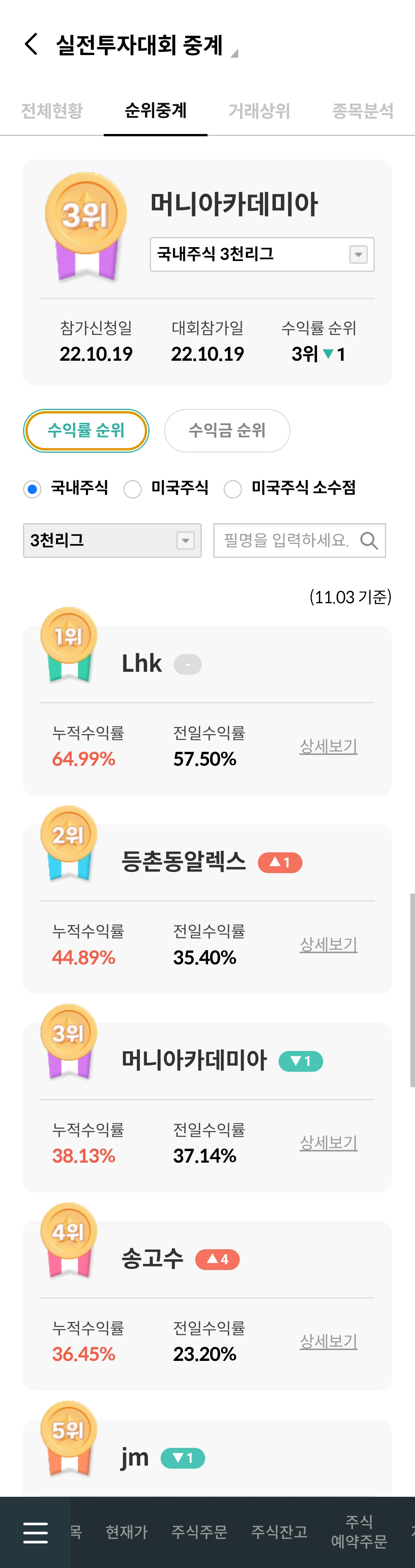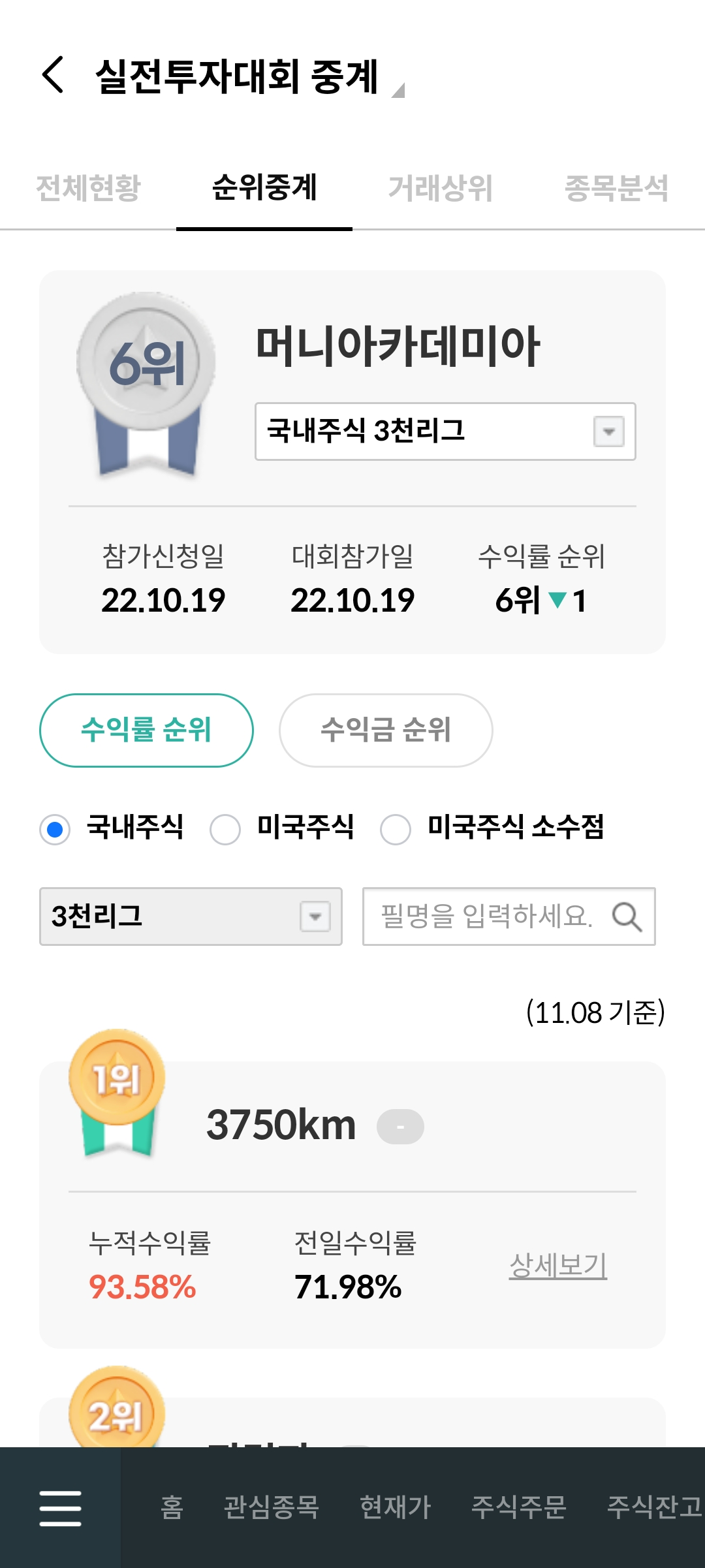 하나증권 실투대회 3000만원 리그