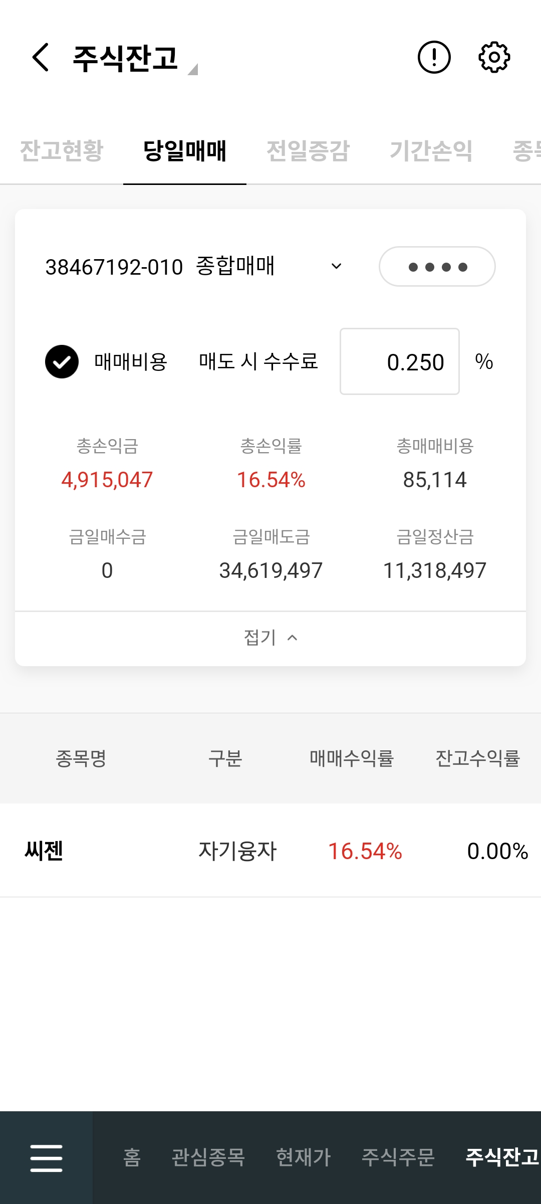 1차 매수분은 한 16% 정도 수익 보고 나왔고