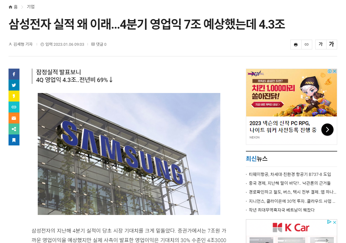 삼성전자, LG전자가 실적 쇼크였자나