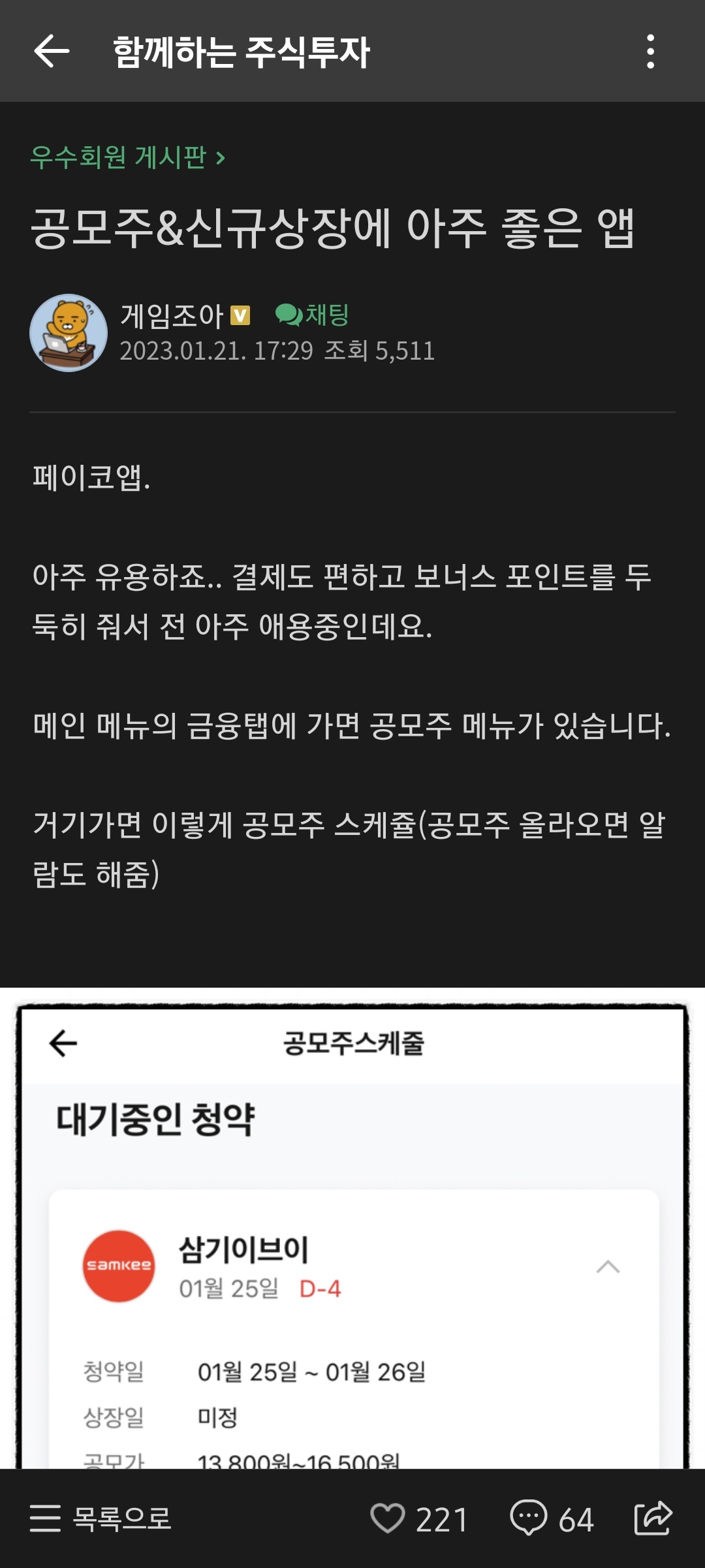 보통 공모가를 지나면 반등이 나오는 타이밍과 가격이 있음