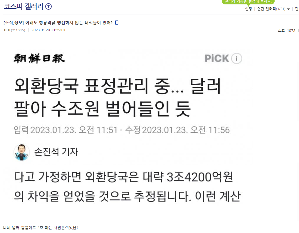 외환당국은 달러 짤짤이로 3.4조를 벌으시는