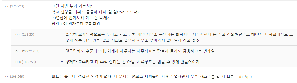 오늘 디씨에서 본 글인데 난 여전히 청소년 금융교육에 반대하고