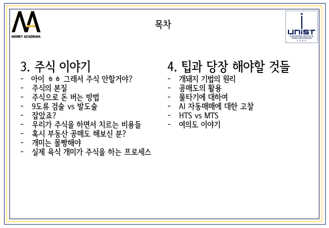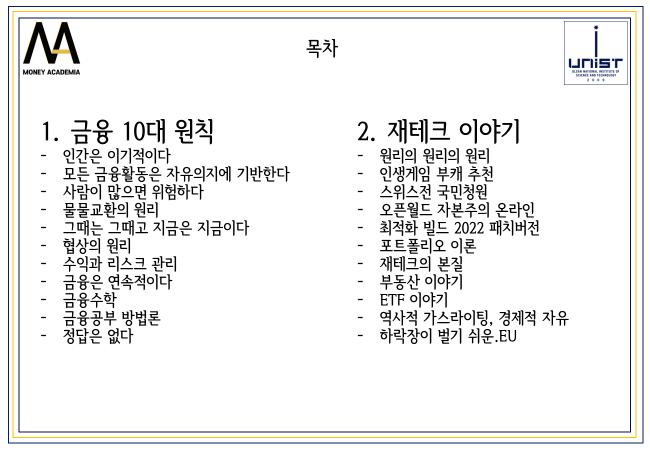 금융에서 내가 가르쳐주고 있는 컨텐츠가