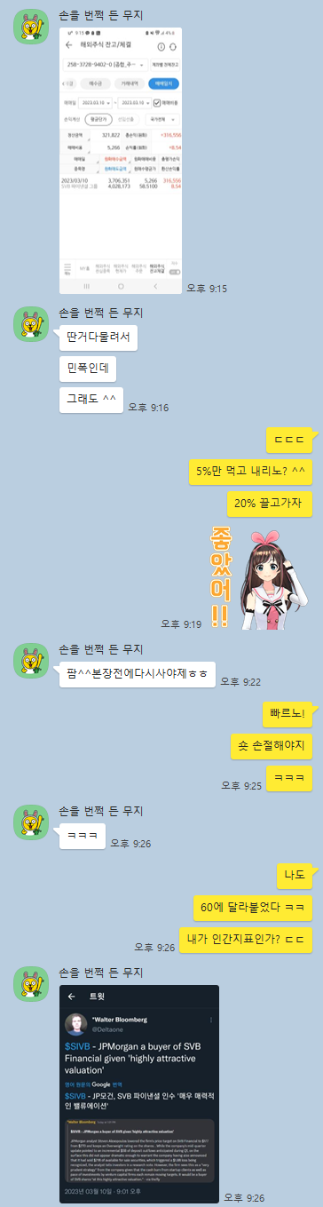 SIVB에 1100만원치 상폐맞음카톡 대화 내용 보면 알겠지만