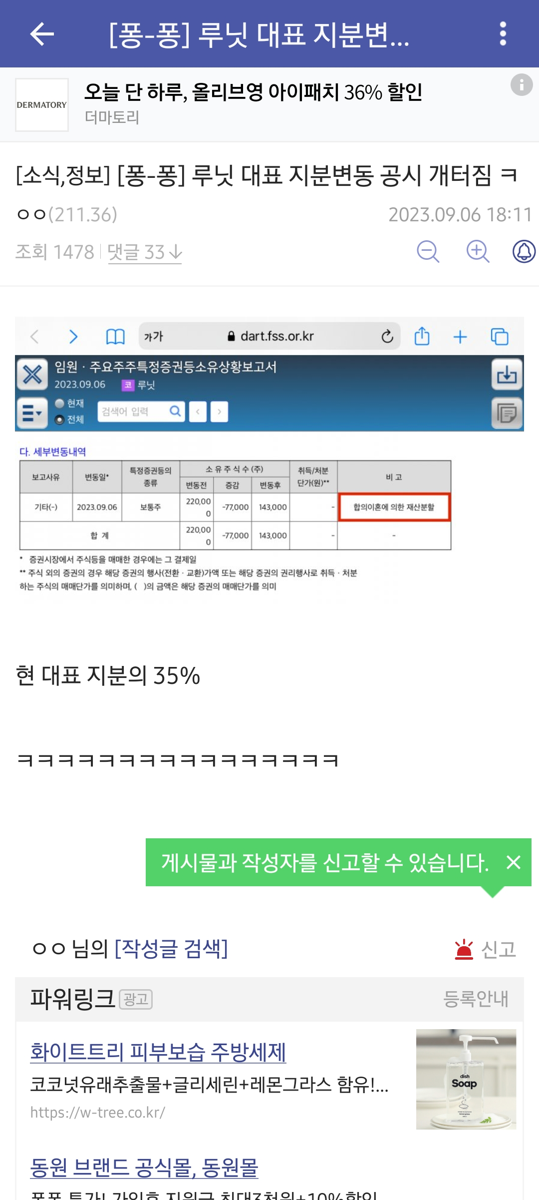 아무튼 그래서 이게 악재냐 라고 하면 저런 케이스로 취득한 주식은 보호예수 걸린다고 어디서 들었던것 같아서 하루 만에 7만주 시장가 매도할 수는 없는데 있다고 해도 딱히 신경 안써도 됨
