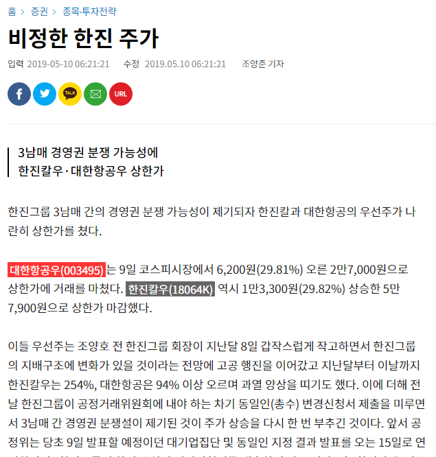 너무 비정하게도 한진칼은 고인의 주식을 누가 어떻게 받아서 어떻게 할 것이냐 혹시 어떤 사업부를 어떻게 조정하고... 알사람들은 알겠지만 땅콩만 봐도 한진그룹 자녀들이 살벌함... 일단 자녀들이 회사 경영권 때문에 싸우지 않을까 하면서 주가가 폭등했음. 싸우는게 돈이 되는 이유는 SM 인수전 하이브 vs 카카오 엔터 같은 사례로 보면 됨.